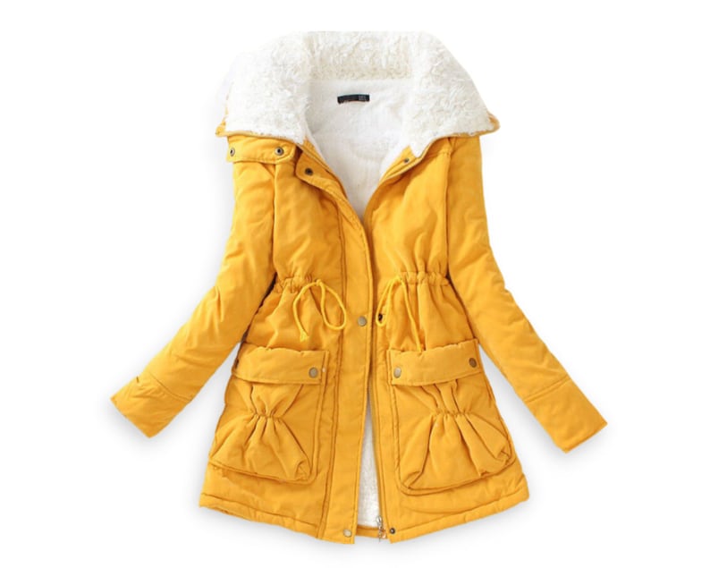 A very stylish jacket made with high quality materials. Zipper and button closure, Two large pockets and Adjustable waist.